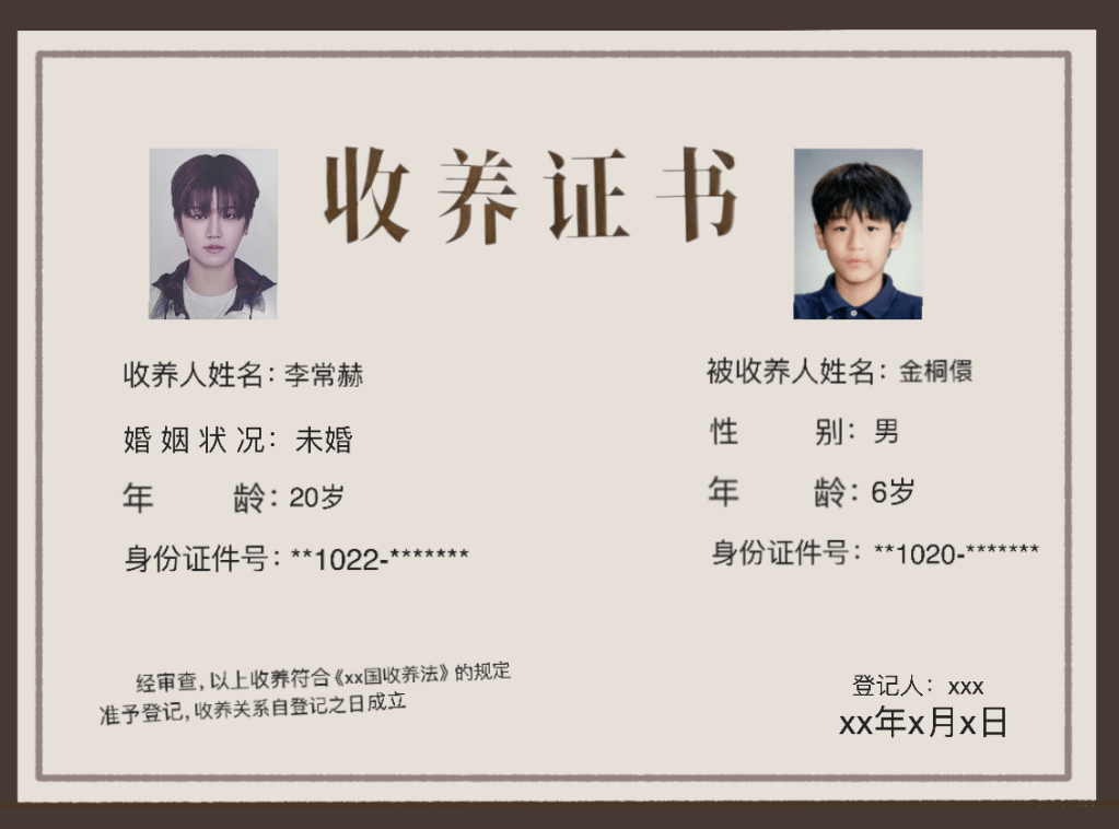 我想到茶几上摊着的那本被撕裂后重新粘好的恋爱记录,上面写满了我和李常赫的告白、约会、日常相处的点点滴滴。而此刻屏幕里却明明白白地显示着“收养人”的关系,把我们之间的身份重新定义。